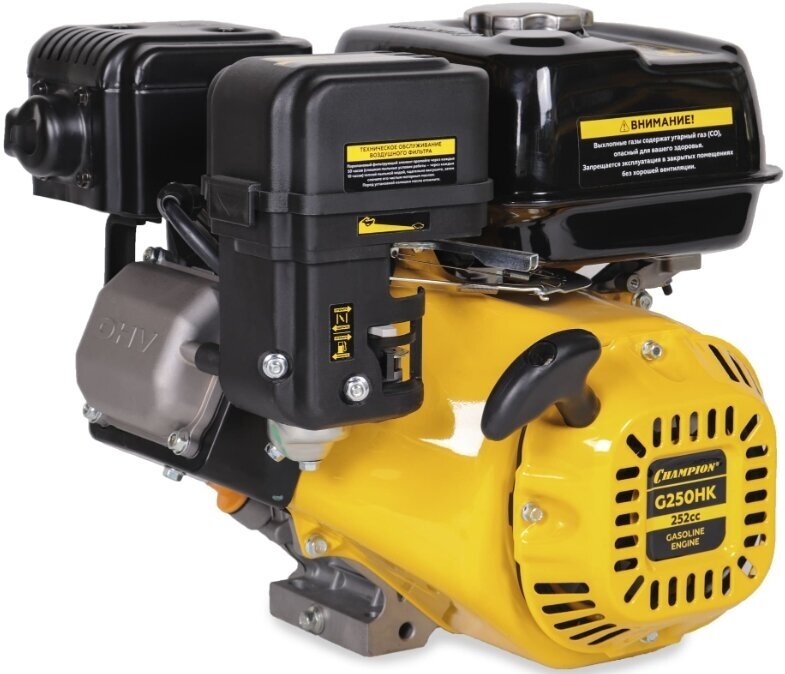 Type: gasoline, power, hp: 8, displacement: 252 cm³, number of cylinders: 1, number of strokes: 4 stroke, fuel tank capacity: 4 l