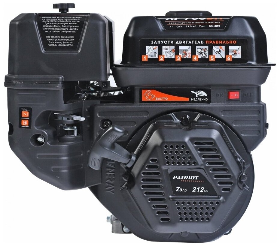 Type: gasoline, purpose: for a cultivator, for a walk-behind tractor, power, h.p.: 7, power: 5.15 kW, working volume: 212 cm³, number of strokes: 4 stroke, fuel tank capacity: 3.60 l