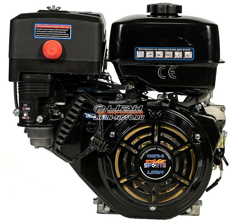 Type: gasoline, power, hp: 15, displacement: 420 cm³, number of cylinders: 1, number of strokes: 4 stroke, electric starter, fuel tank capacity: 6.50 l