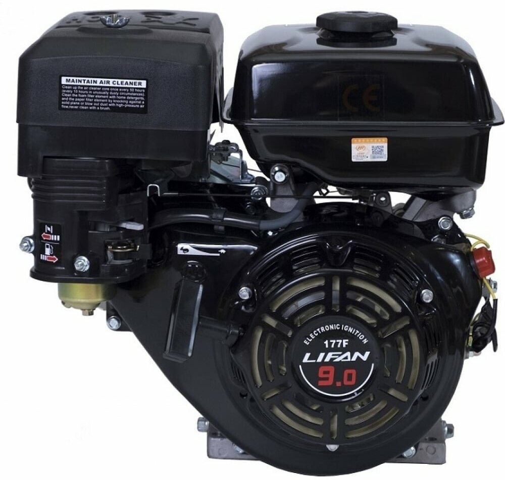 Type: gasoline, purpose: for a snow blower, for a mini-tractor, for a motor pump, for a cultivator, for a walk-behind tractor, power, hp: 9, working volume: 270 cm³, number of cylinders: 1, number of strokes: 4 stroke, capacity fuels