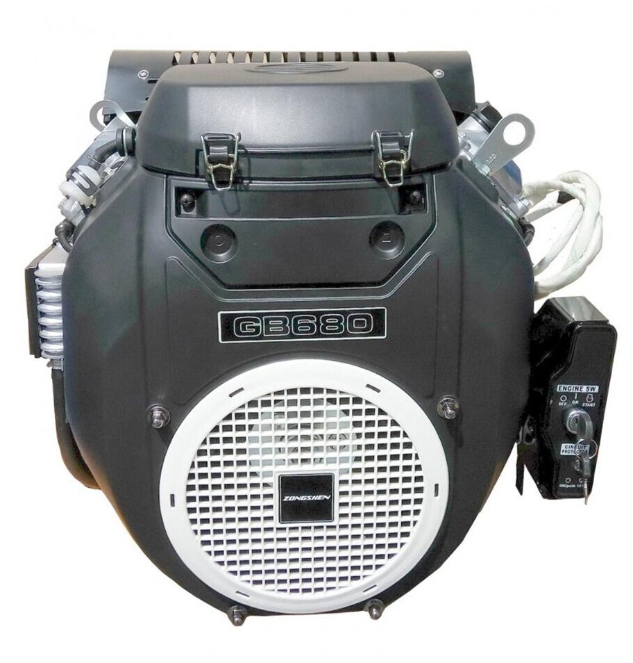 Type: gasoline, power, hp: 24, working volume: 679 cm³, number of cycles: 4-stroke, electric starter