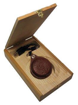Gift version, leather coated, made in the form of a keychain, packed in a wooden box