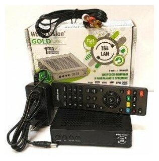 Receiver T64LAN; Remote control with batteries; Power unit; Cable 3 RCA - 3 RCA; Management
