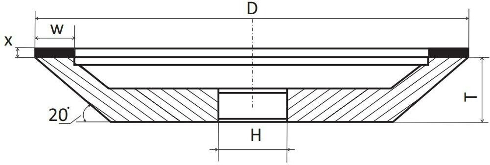 Diamond layer thickness 3 mm, diamond layer width 6 mm, diamond disc grit 100/80, diamond content at conc. 100% 15.6 carats