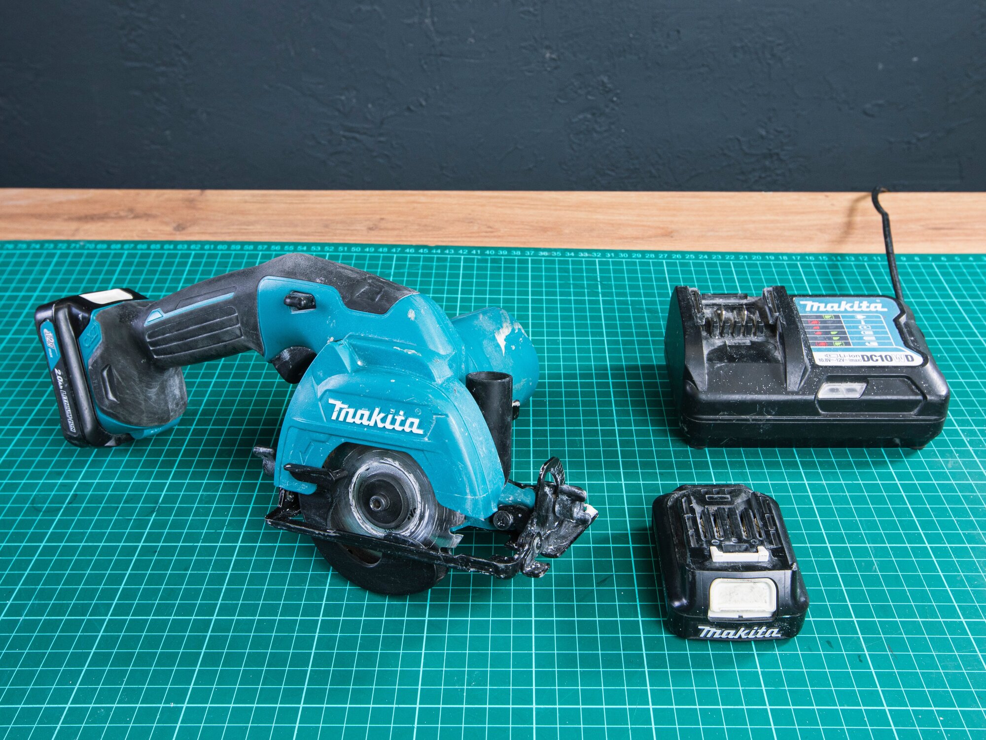 Two batteries, charger, case, saw blade, key