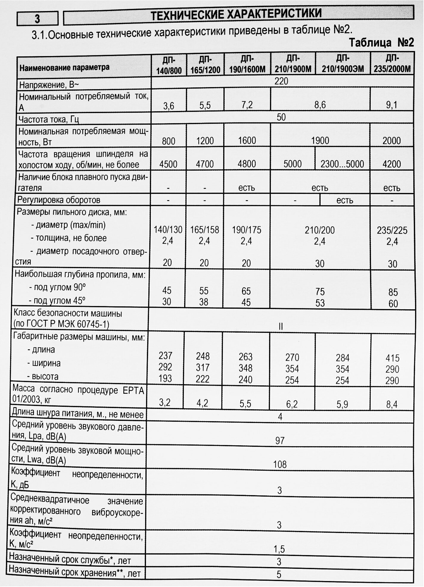 | Cutting depth 45°: |