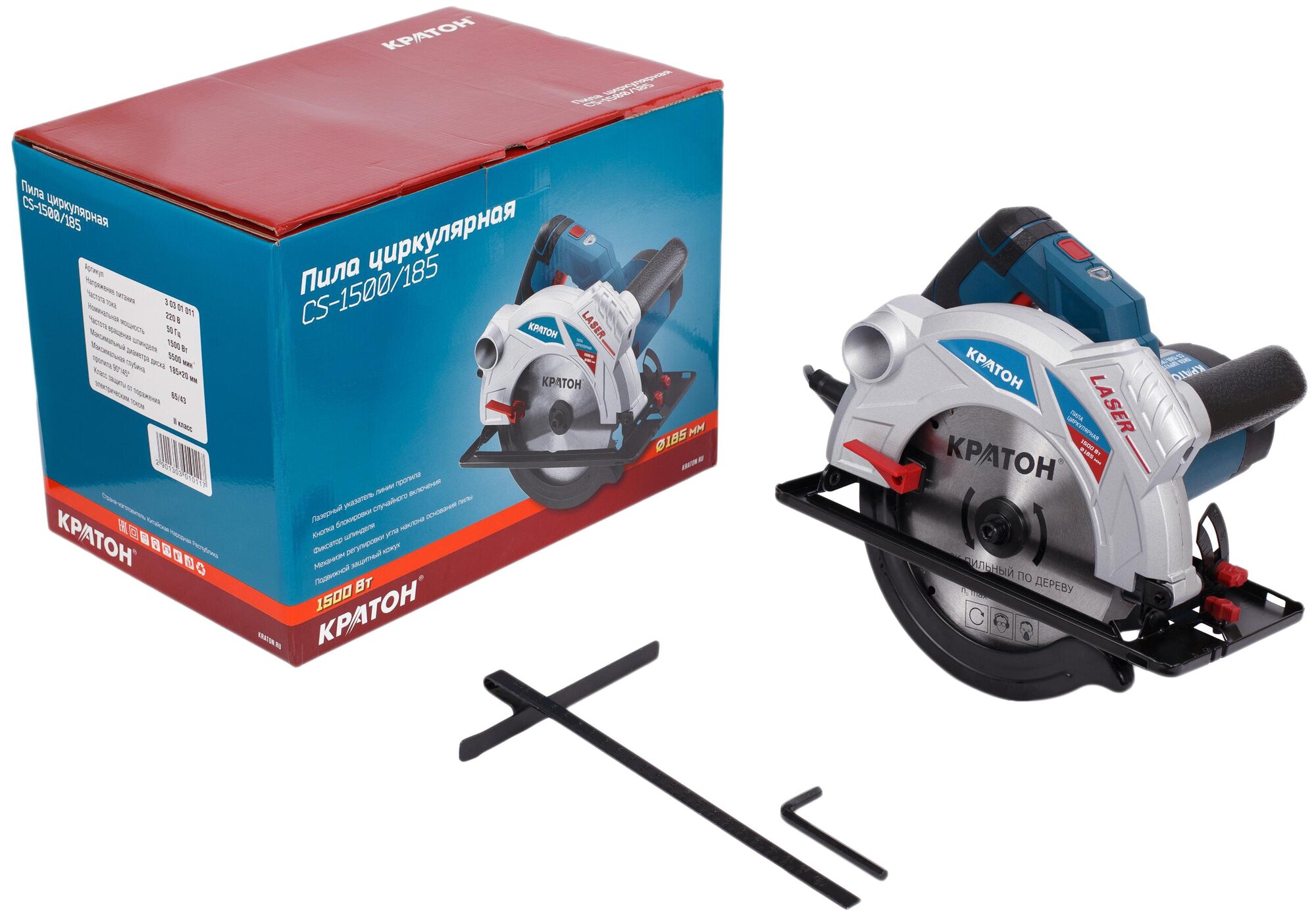 Circular saw, parallel stop, hex wrench, instruction manual, cardboard box