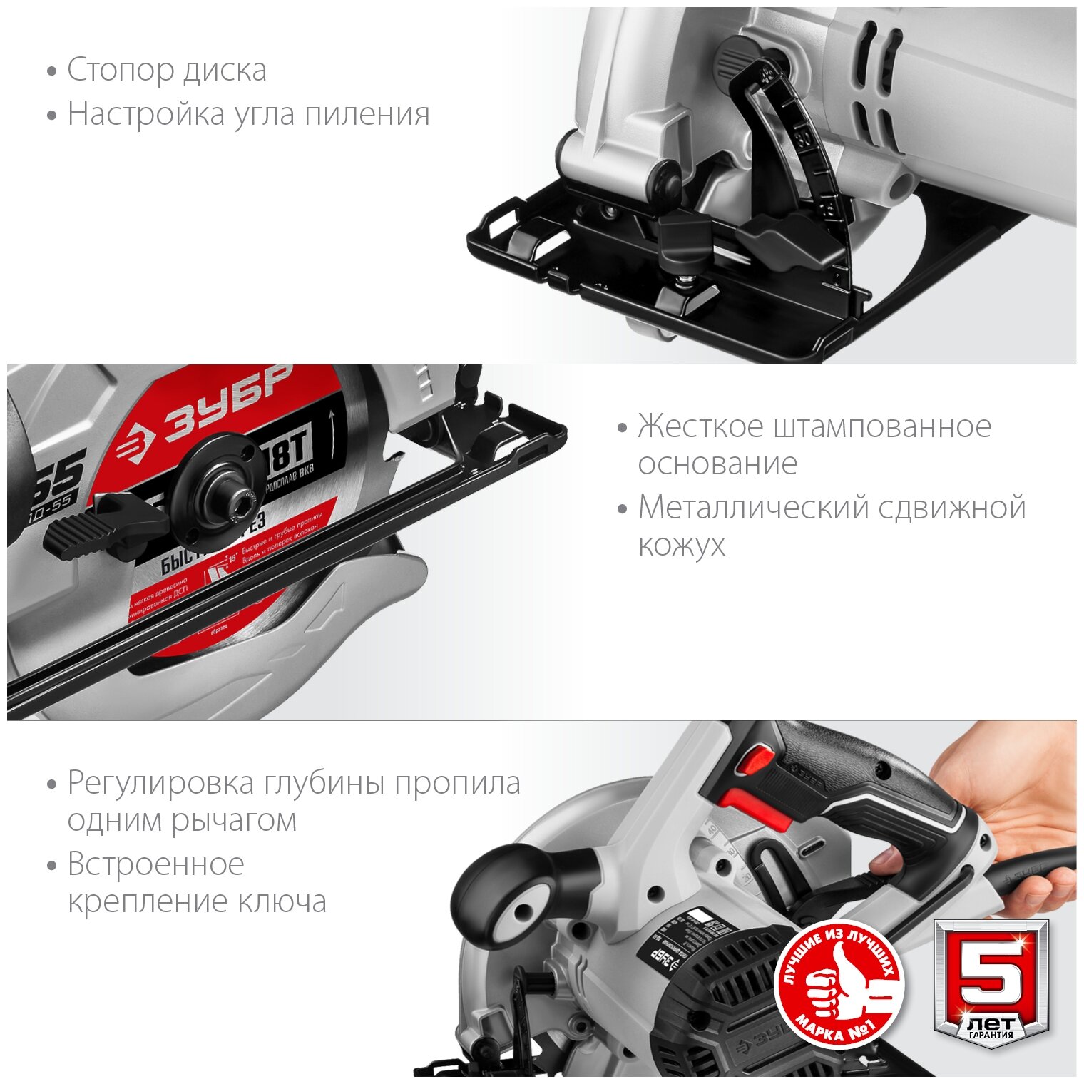 Circular saw Zubr PD-55 - 1 pc., disk installed - 1 pc., guide - 1 pc., key - 1 pc., instruction manual - 1 pc.
