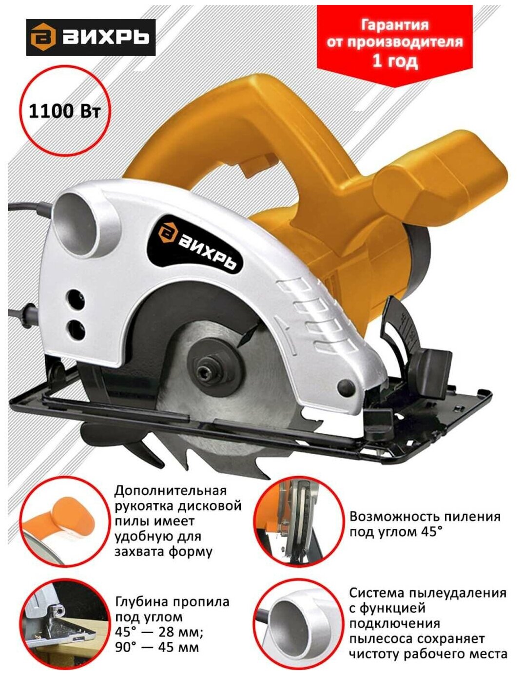 Cutting depth 45°: