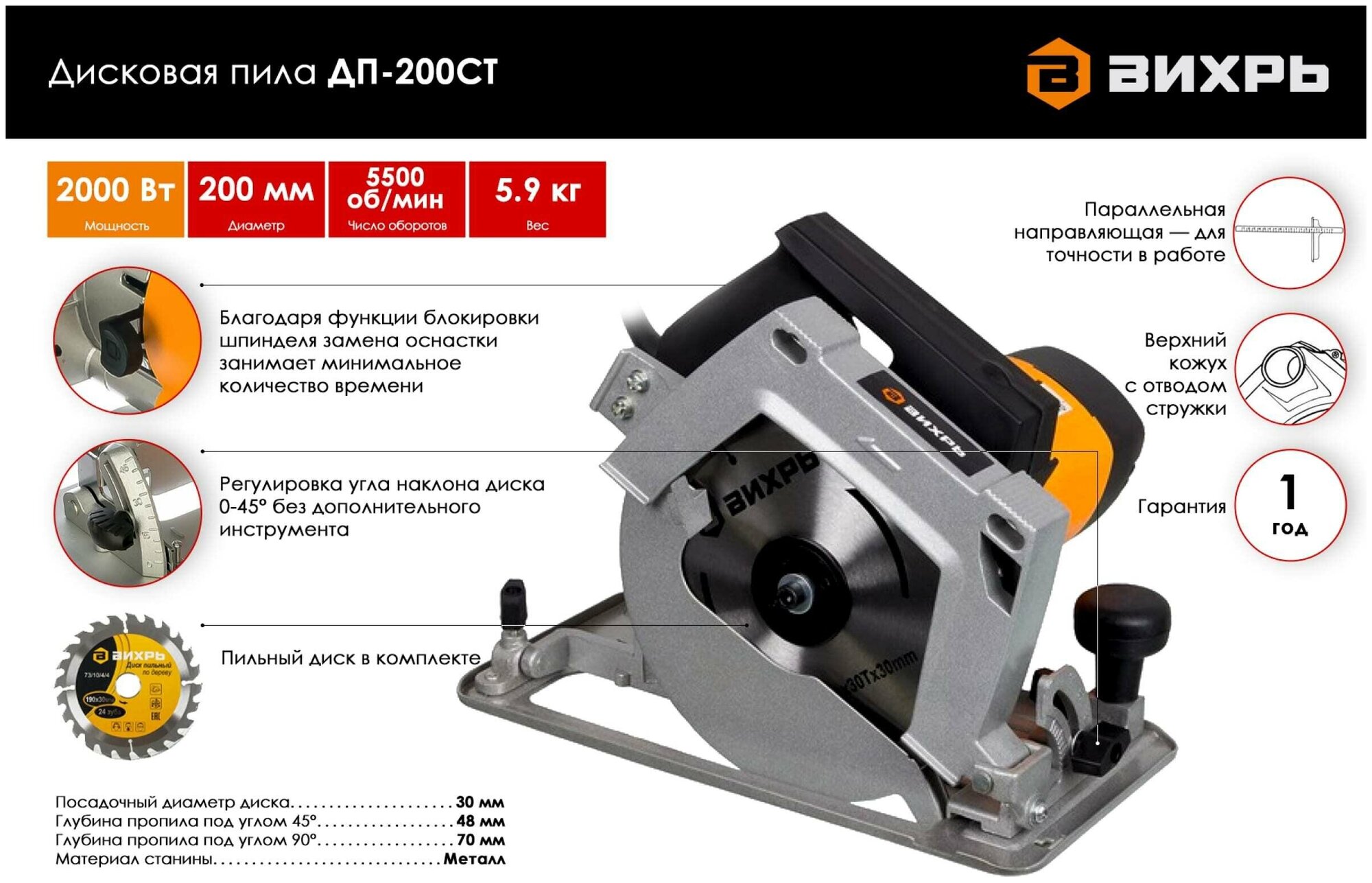| Cutting depth 45°: |