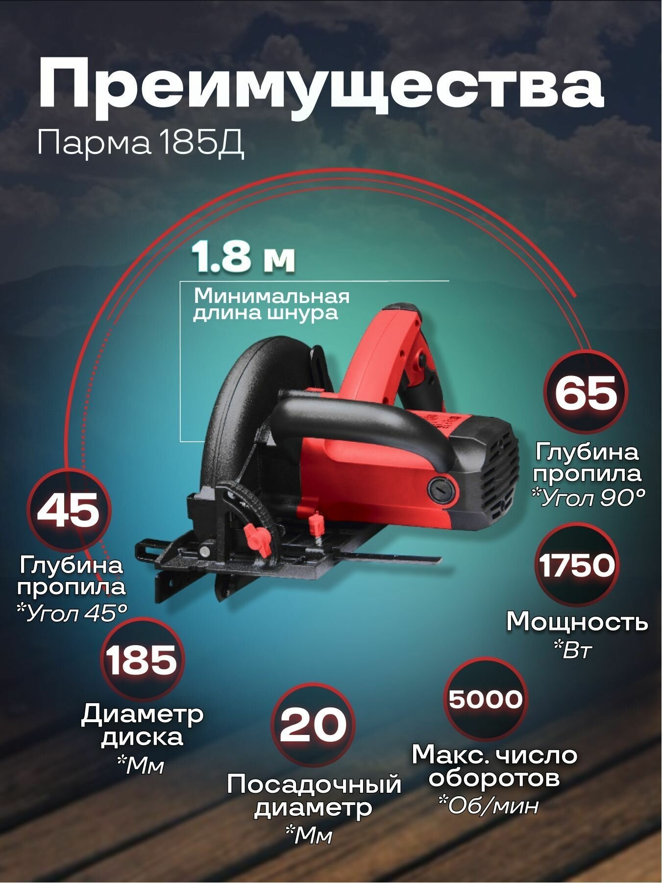 | Cutting depth 45°: |