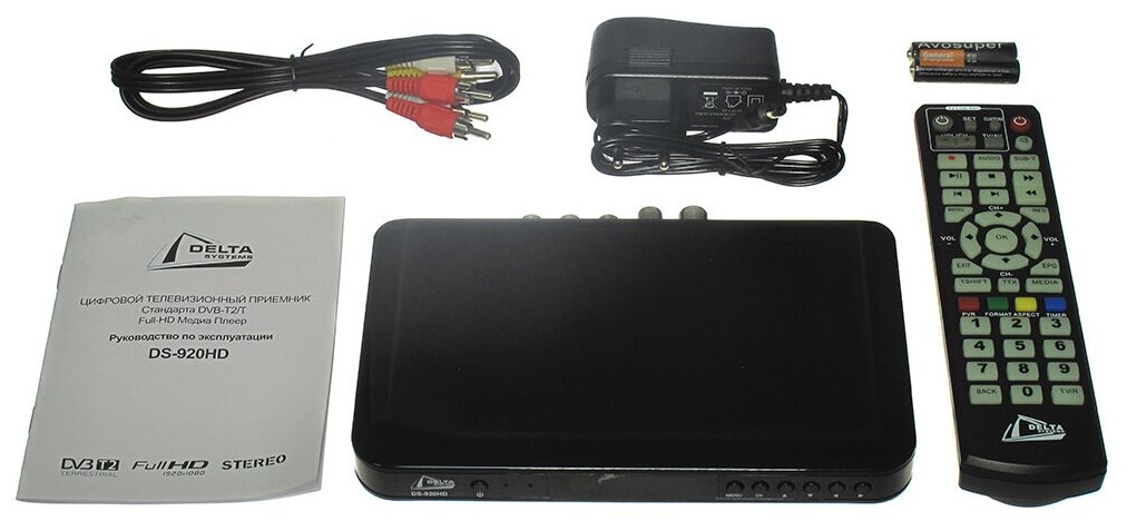 Receiver DS-920 HD; Learning remote control; AV cord; Power supply 220v - 5v; User's Manual; Batteries 2хААА