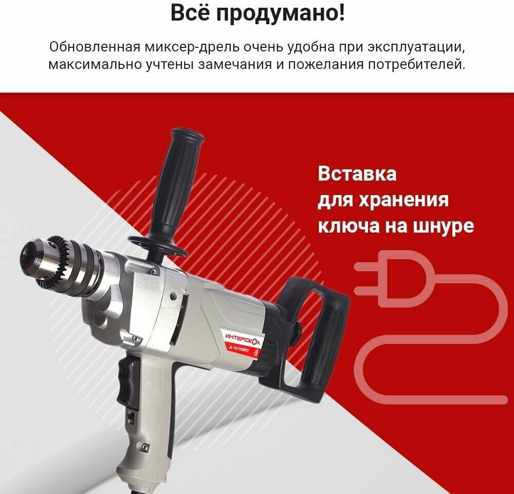 Description: Type: drill, power type: mains, presence of impact for drill: hammerless, chuck type: key, functions: mixer, reverse, Drilling, power consumption: 1050 W, maximum torque: 160 Nm, design features: