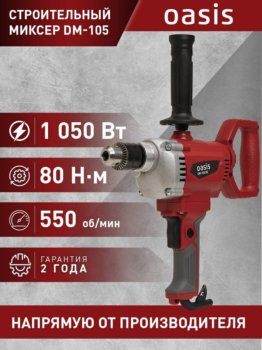 Type: mixer, power type: mains, presence of impact for drill: hammerless, chuck type: key, functions: speed control, power consumption: 1050 W, maximum torque: 80 Nm, design features