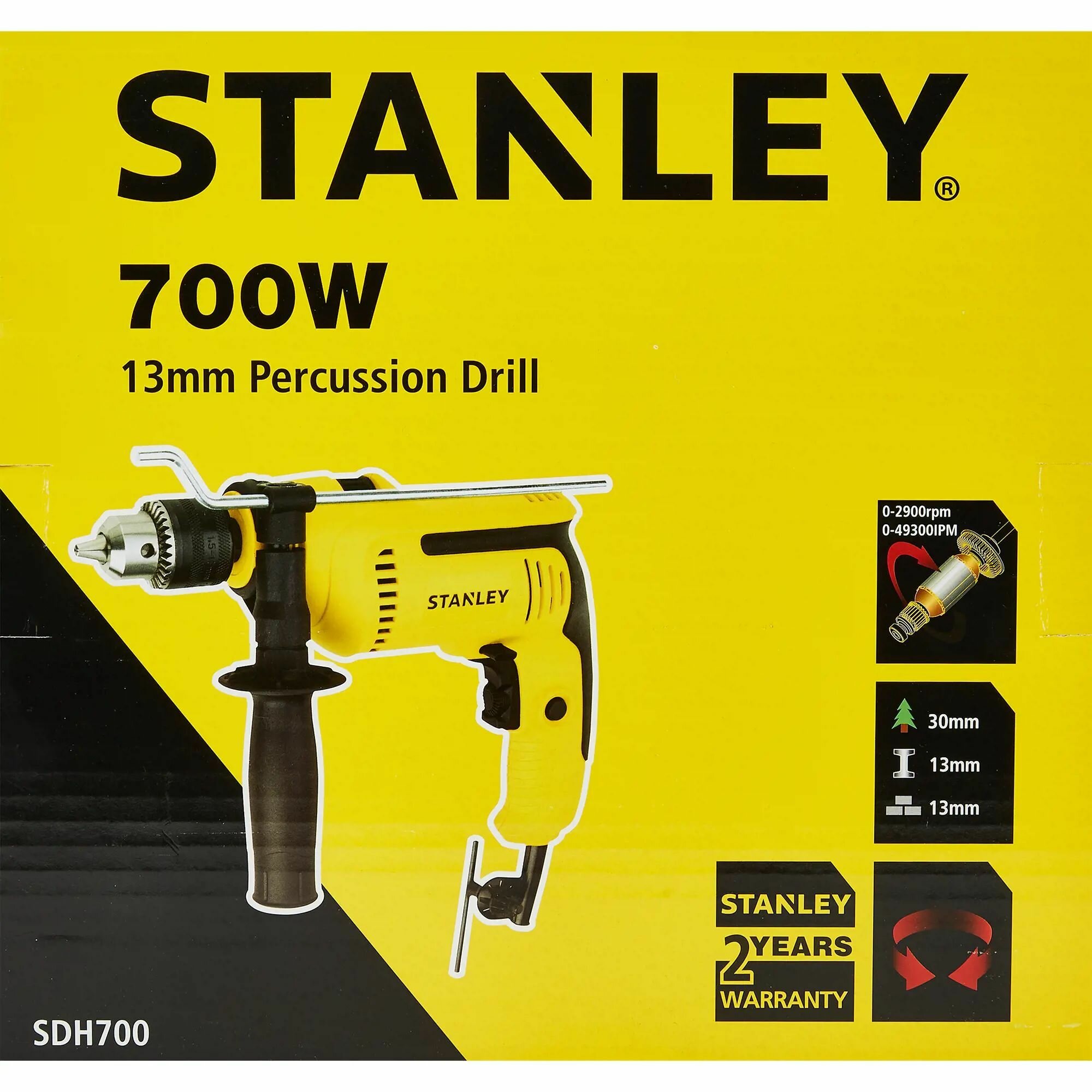 Description: Type: drill, power type: from the network, presence of a blow for the drill: impact, chuck type: key, functions: work in the rack of a drilling machine, reverse, rotation speed adjustment, power consumption: 700 W, features cons