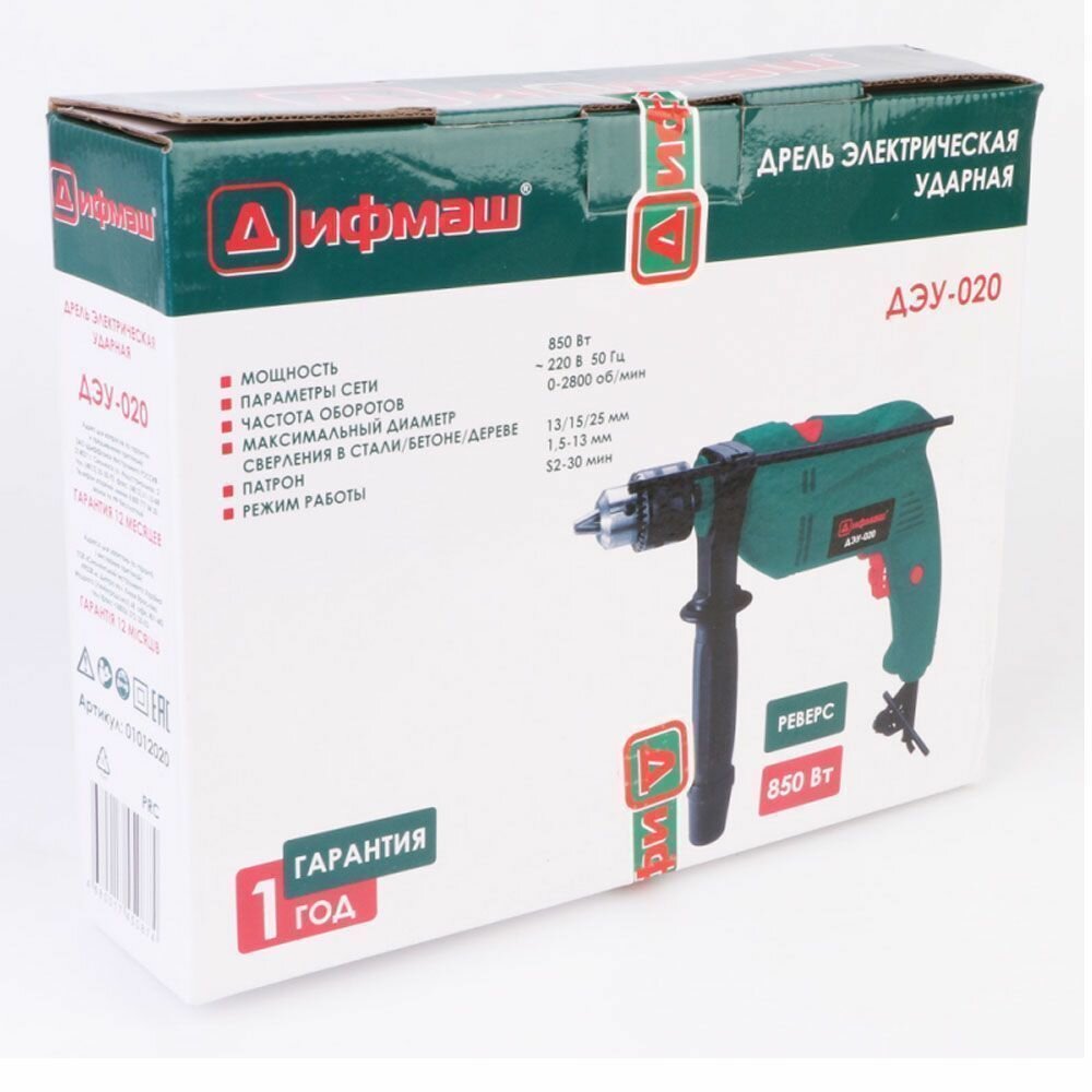 Type: drill, power type: mains, presence of impact for drill: impact, chuck type: key, functions: reverse, chiselling, screwing, smooth speed change, Drilling, Drilling, Drilling with impact, Drilling with impact
