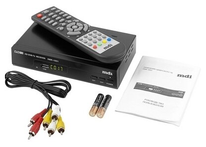Digital TV receiver; RCA cable "tulips"; Remote control; AAA type batteries for the remote control - 2 pcs; User guide