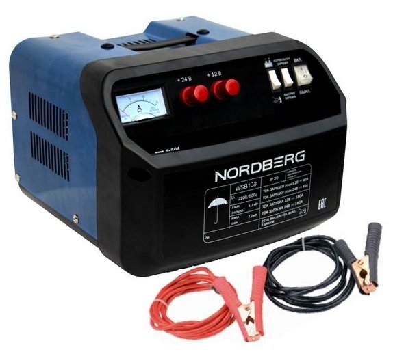 Type: start-charger, battery voltage: 12/24 V, maximum starting current: 160 A, maximum battery capacity: 500 Ah, indication: analog