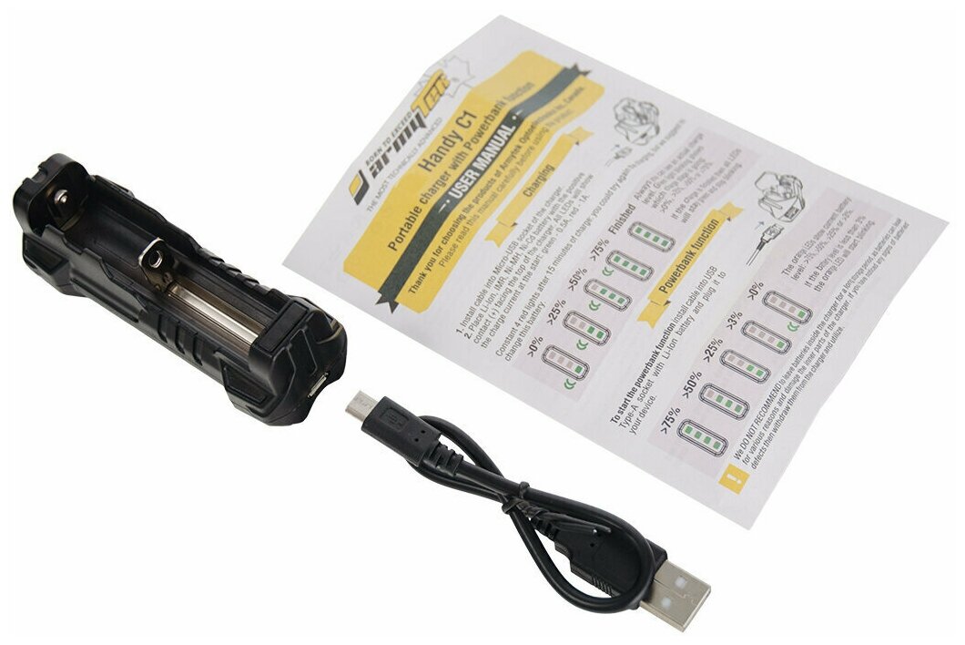 Battery type: IMR Li-Mn, Li-Ion, size: 18650, 18700, number of battery locations: 1, powered by USB