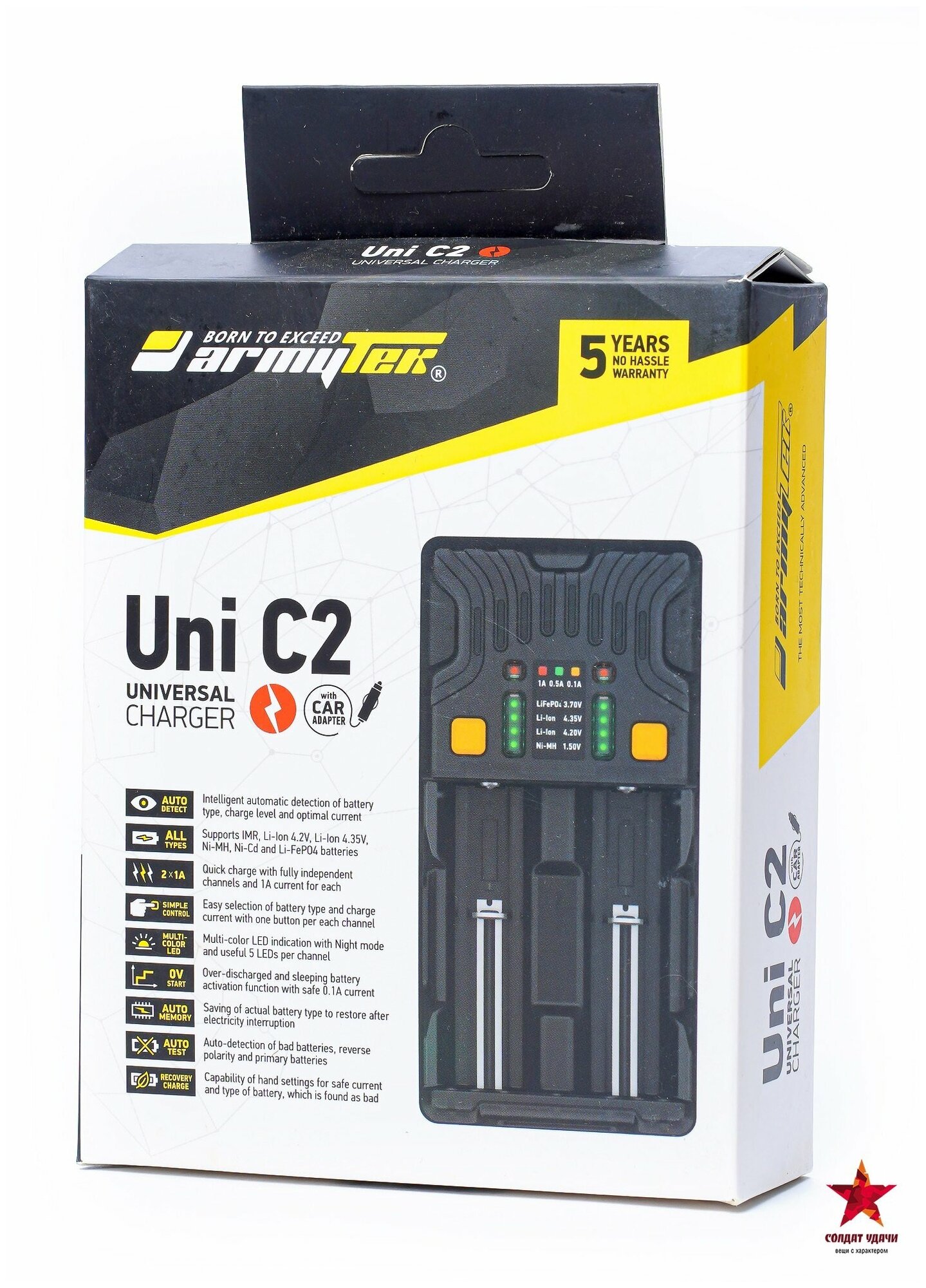 Description: Battery type: IMR Li-Mn, Ni-Cd, size: 10440, 14500, 16340, 18350, 18650, 18700, 26650, 32650, AA, AAA, AAAA, C, D, number of battery locations: 2, power: from car cigarette lighter