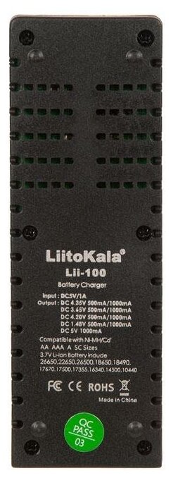 Battery type: Li-Ion, LiFePO4, Ni-Cd, Ni-Mh, number of battery slots: 1, powered by USB
