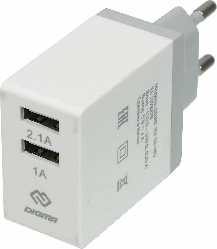 Mains charger DIGMA DGWC-2U-3A-WG