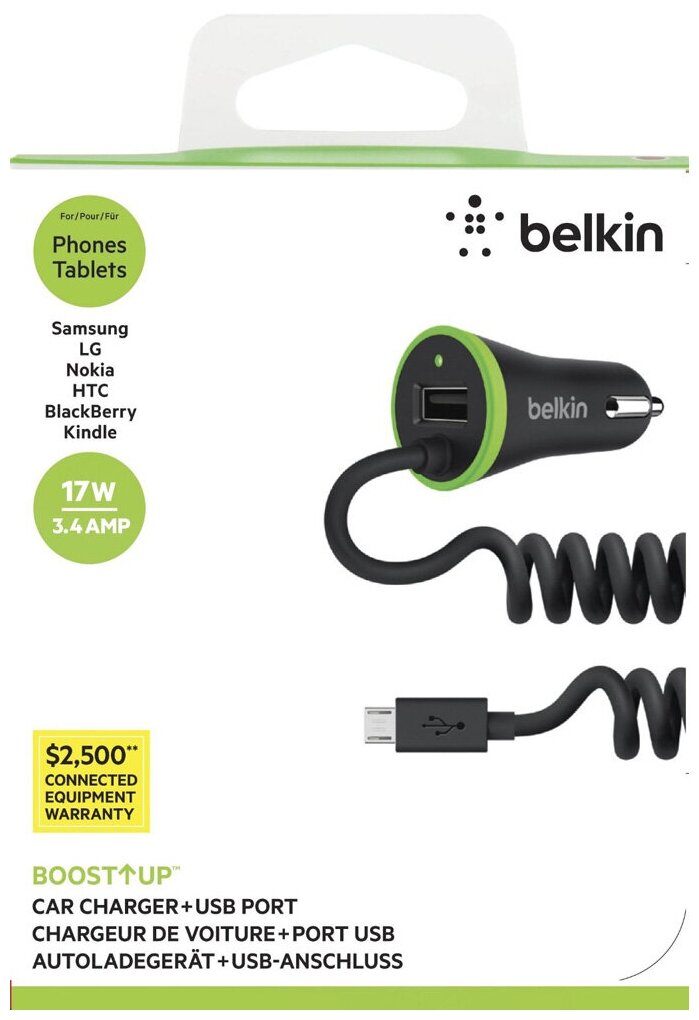Charger Belkin AZU BOOST UP, USB port 3.4A built-in twisted cable Micro USB 1.2m