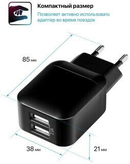 Cable connector: mains plug, number of connectors: 2, maximum output current: 2.10A, features: overcurrent protection