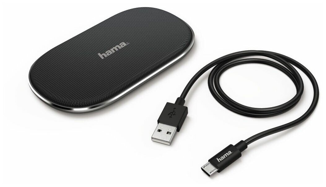 Wireless charge device Hama FC-10 FABRIC USB cable black silver 00183344