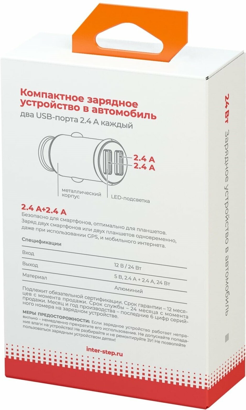 Car charger InterStep Metal: 2*USB2.4A+2.4A 24W, Silver