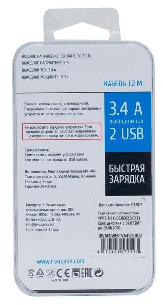 AC charger RIVACASE Rivapower VA4125 + Lightning