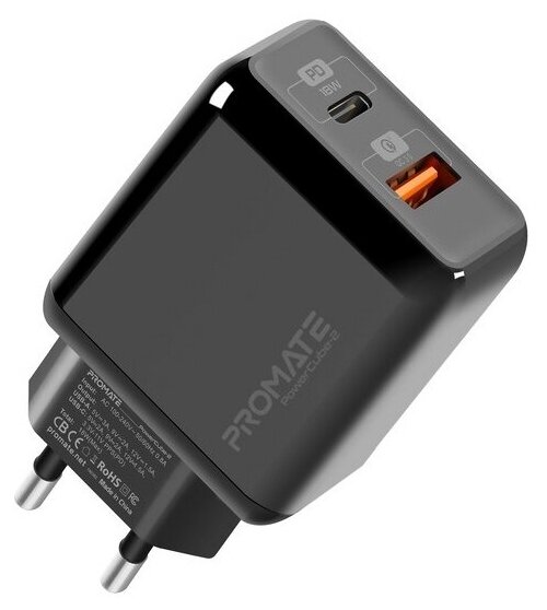 Promate / SZU Promate PowerCube-2, 18W, USB QC3.0 + USB-C PD black