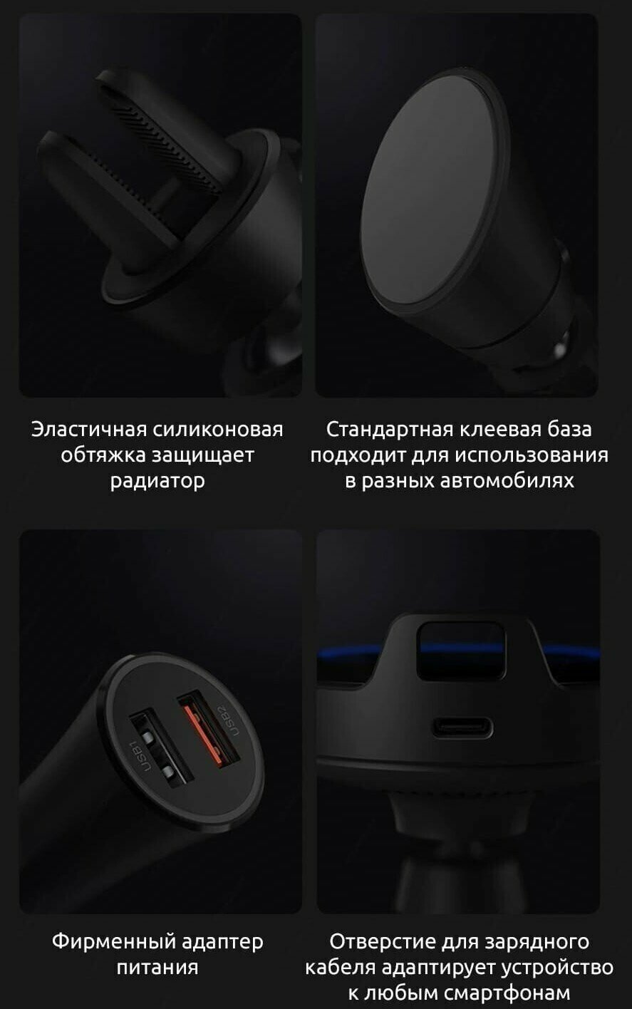 Equipment: wireless car charger, power cable, car adapter, dashboard mount; CH/Global version