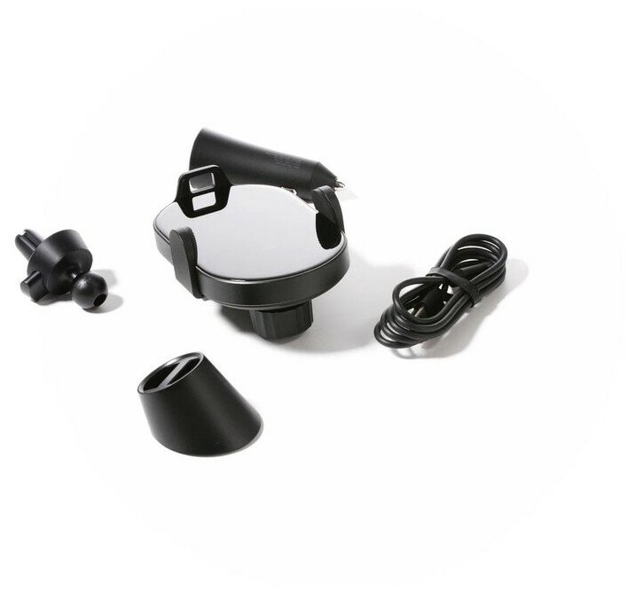 Included in the kit: Base for wireless charging, detachable cable, cigarette lighter plug with connector