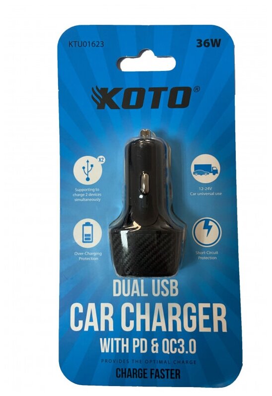 Car charger KOTO KTU01623 DUAL USB 2-USB PD+QC3.0,12/24V