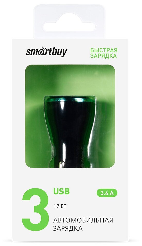 Car charger SmartBuy, fast charging, 3.4 A, 3 USB, 17 W SBP-1830, black