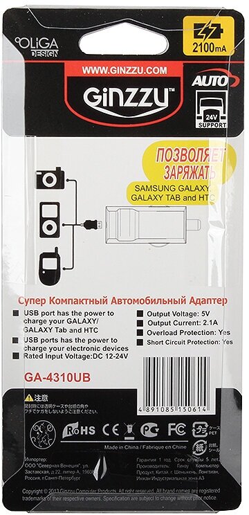 Number of connectors: 1, maximum output current: 2.10 A