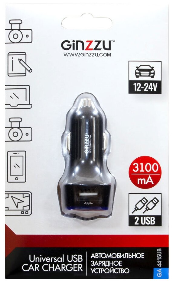 Cable connector: USB Type-A, number of connectors: 2, maximum output current: 3.10A, features: Overcurrent protection