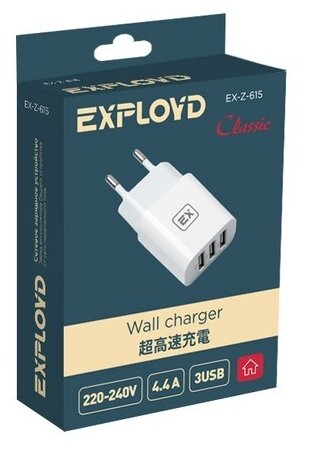 Charger Exployd Classic 4.4A 3xUSB White EX-Z-615