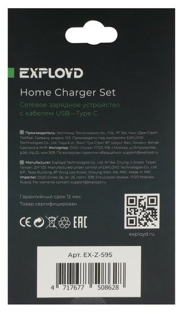 Charger Exployd Classic 3.1A 2xUSB - Type-C White EX-Z-595