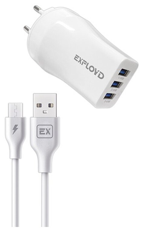 Charger Exployd Classic 3xUSB 3.1A + Cable microUSB White EX-Z-981