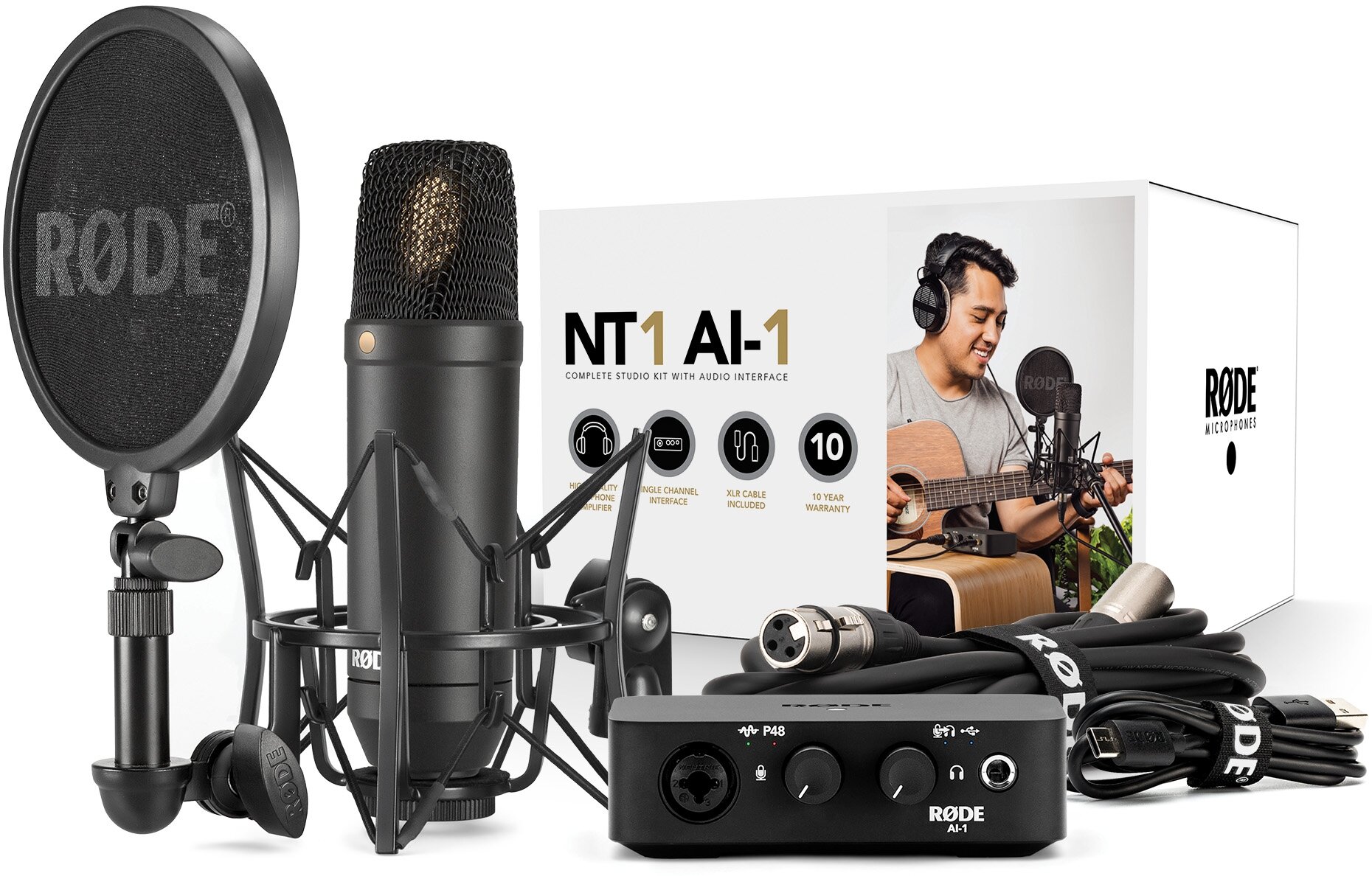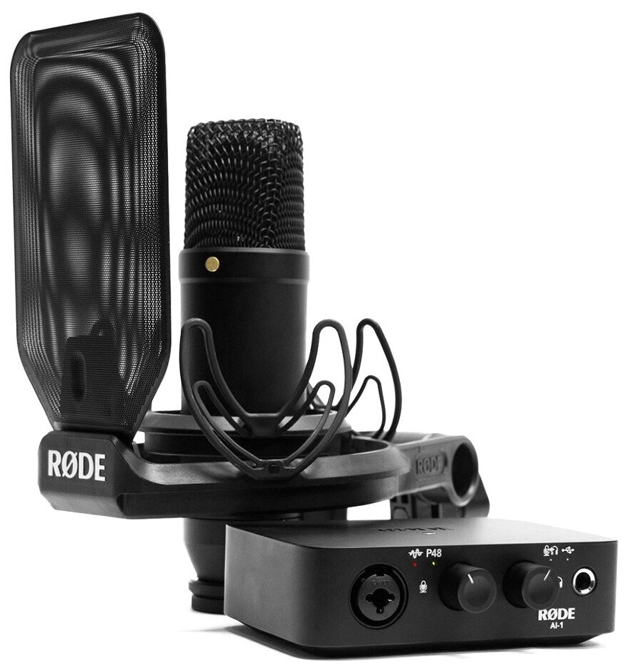 Microphone NT1, AI-1 USB interface, mount with pop filter, XLR cable, USB cable