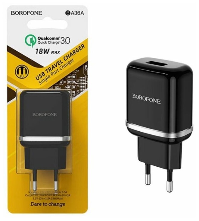 Cable connector: USB Type-A, USB Type-C, number of connectors: 1, fast charging, fast charging standard: Qualcomm Quick Charge 2.0, Qualcomm Quick Charge 3.0, Samsung Adaptive Fast Charging, GaN, maximum output current: 3 A, maximum output power: 18W, spe