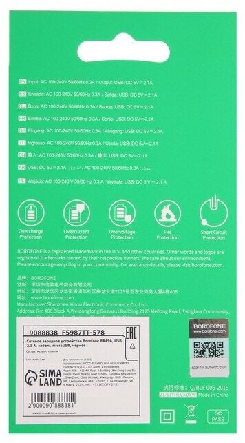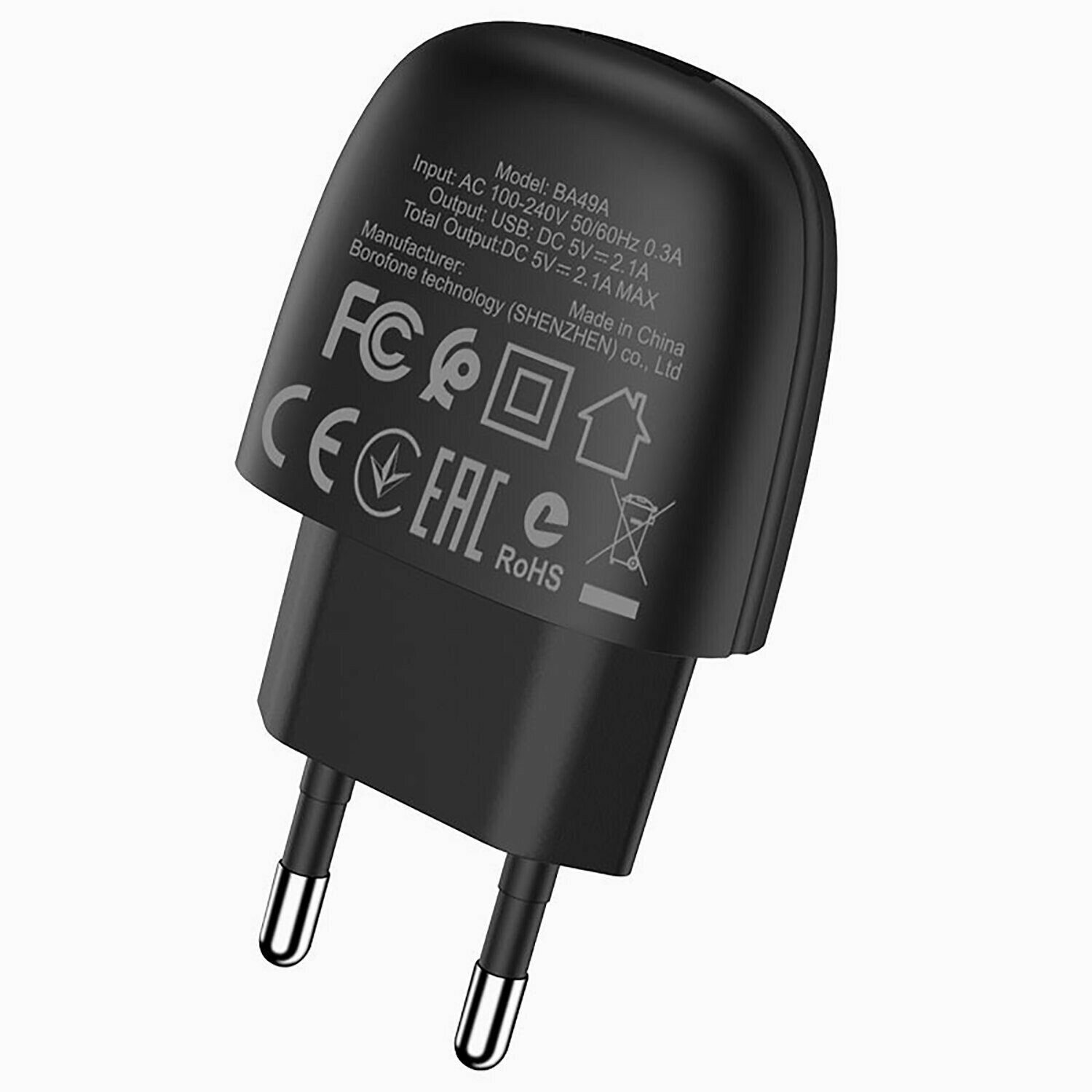 Borofone BA49A Vast power mains charger, one USB port, set with Micro-USB cable, black
