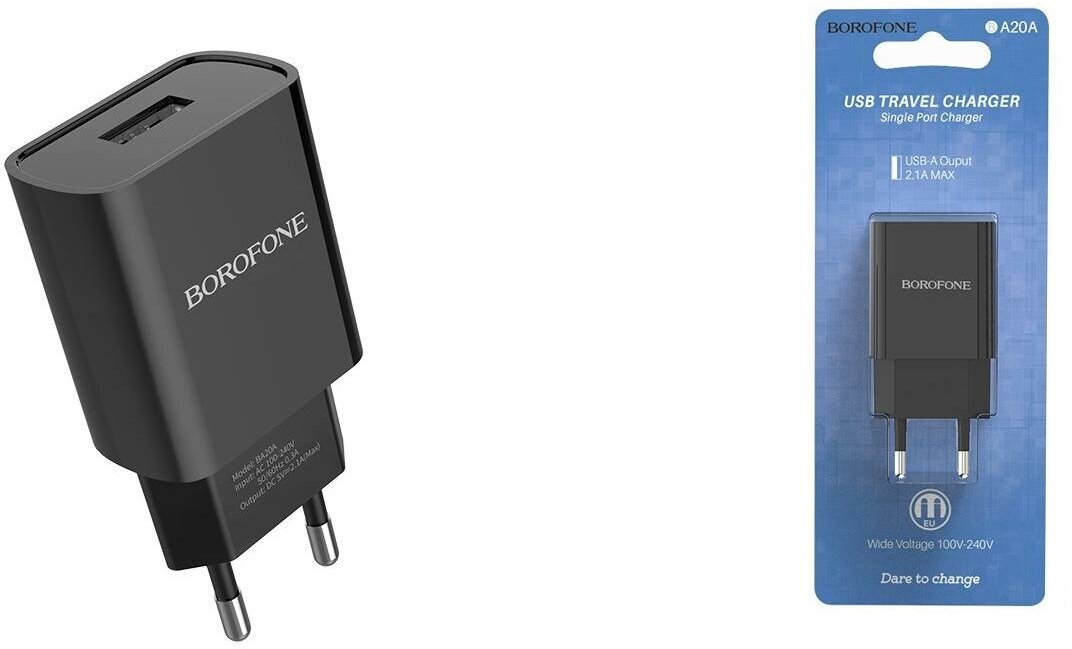 Wall charger Borofone BA20A Sharp, one USB port, black