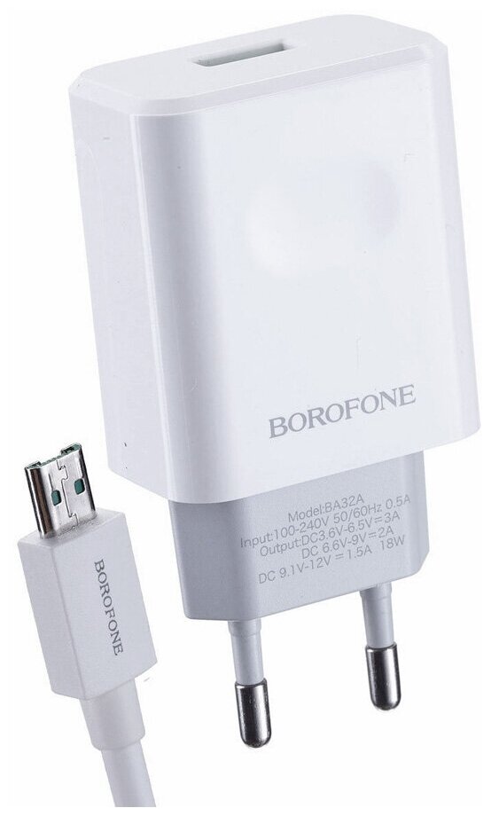 Cable connector: USB Type-A, micro USB, number of connectors: 1, fast charging, fast charging standard: Qualcomm Quick Charge 2.0, Qualcomm Quick Charge 3.0, Samsung Adaptive Fast Charging, maximum output current: 3 A, maximum output power: 18 W, cable in