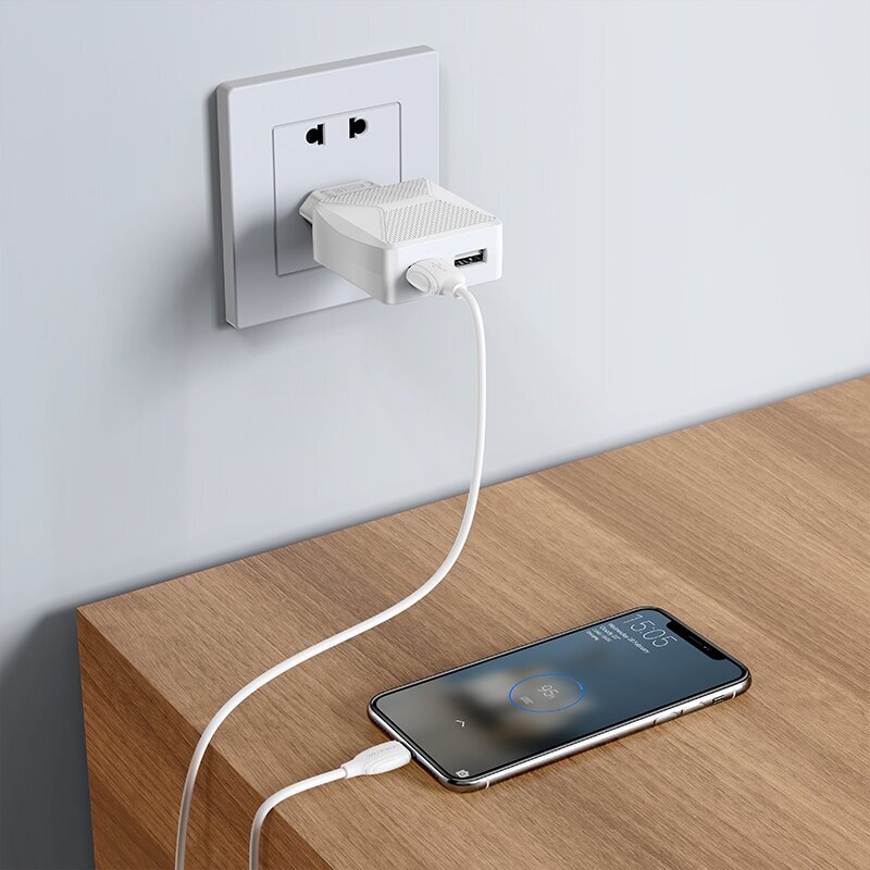 Borofone BA45A Max 2xUSB Wall Charger with Type-C Cable - White