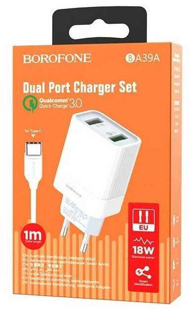 AC adapter with connector, USB-A to USB Type-C cable, documentation
