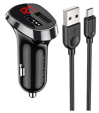 Cable connector: USB Type-A, micro USB, number of connectors: 2, maximum output current: 2.40 A, cable included, features: display