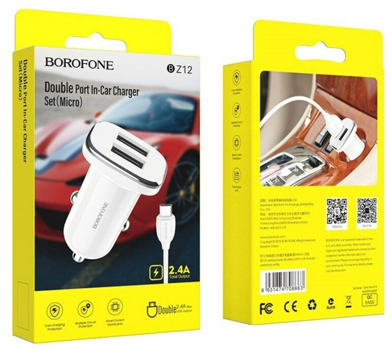 Cable connector: USB Type-A, micro USB, number of connectors: 2, maximum output current: 2.40 A, cable included, features: cable included